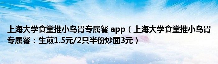 大家好,綜合小編來為大家講解下。上海大學(xué)食堂推小鳥胃專屬餐 app,上海大學(xué)食堂推小鳥胃專屬餐:生煎1.5元/2只半份炒面3元很多人還不知道,現(xiàn)在讓我們一起來看看吧!