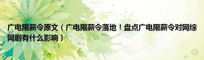 大家好,綜合小編來為大家講解下。廣電限薪令原文,廣電限薪令落地!盤點(diǎn)廣電限薪令對網(wǎng)綜網(wǎng)劇有什么影響很多人還不知道,現(xiàn)在讓我們一起來看看吧!