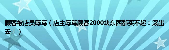 大家好,綜合小編來為大家講解下。顧客被店員辱罵,店主辱罵顧客2000塊東西都買不起:滾出去!很多人還不知道,現在讓我們一起來看看吧!