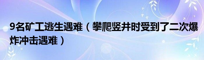 大家好,綜合小編來為大家講解下。9名礦工逃生遇難,攀爬豎井時受到了二次爆炸沖擊遇難很多人還不知道,現在讓我們一起來看看吧!