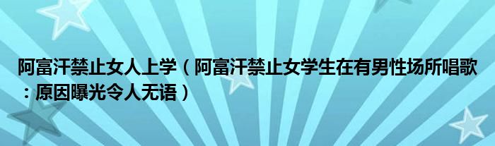 大家好,綜合小編來為大家講解下。阿富汗禁止女人上學(xué),阿富汗禁止女學(xué)生在有男性場(chǎng)所唱歌:原因曝光令人無語很多人還不知道,現(xiàn)在讓我們一起來看看吧!