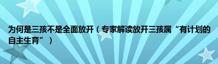 為何不是全面放開?放開三孩屬“有計劃的自主生育”