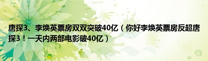 大家好,綜合小編來(lái)為大家講解下。唐探3、李煥英票房雙雙突破40億,你好李煥英票房反超唐探3!一天內(nèi)兩部電影破40億很多人還不知道,現(xiàn)在讓我們一起來(lái)看看吧!