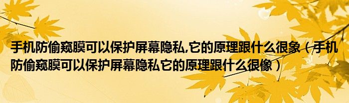 大家好,綜合小編來為大家講解下。手機防偷窺膜可以保護屏幕隱私,它的原理跟什么很象,手機防偷窺膜可以保護屏幕隱私它的原理跟什么很像很多人還不知道,現在讓我們一起來看看吧!