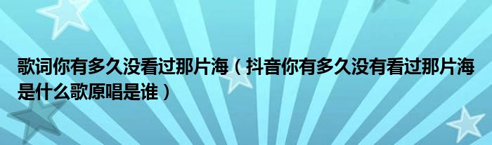 大家好,綜合小編來為大家講解下。歌詞你有多久沒看過那片海,抖音你有多久沒有看過那片海是什么歌原唱是誰很多人還不知道,現(xiàn)在讓我們一起來看看吧!