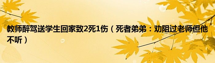 大家好,綜合小編來為大家講解下。教師醉駕送學生回家致2死1傷,死者弟弟:勸阻過老師但他不聽很多人還不知道,現在讓我們一起來看看吧!
