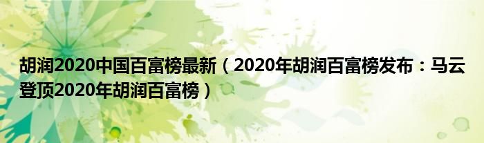 大家好,綜合小編來為大家講解下。胡潤2020中國百富榜最新,2020年胡潤百富榜發布:馬云登頂2020年胡潤百富榜很多人還不知道,現在讓我們一起來看看吧!