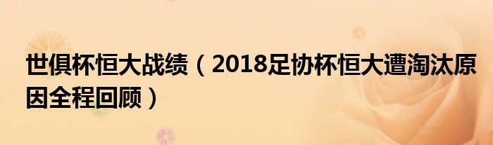 大家好,綜合小編來為大家講解下。世俱杯恒大戰績,2018足協杯恒大遭淘汰原因全程回顧很多人還不知道,現在讓我們一起來看看吧!