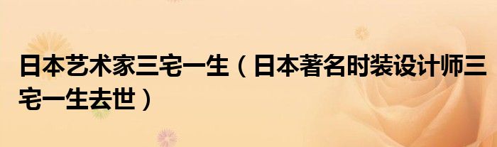 大家好,綜合小編來為大家講解下。日本藝術(shù)家三宅一生,日本著名時裝設計師三宅一生去世很多人還不知道,現(xiàn)在讓我們一起來看看吧!