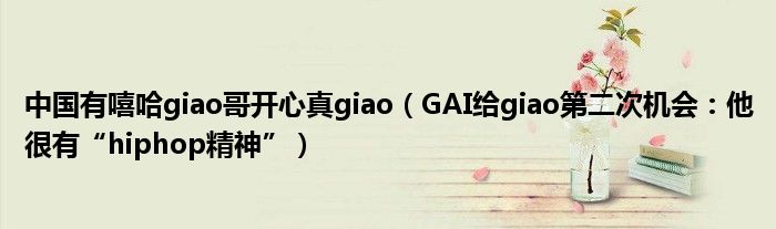 大家好,綜合小編來為大家講解下。中國有嘻哈giao哥開心真giao,GAI給giao第二次機(jī)會:他很有“hiphop精神”很多人還不知道,現(xiàn)在讓我們一起來看看吧!