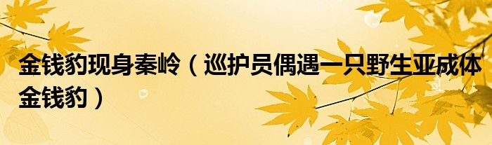 大家好,綜合小編來為大家講解下。金錢豹現(xiàn)身秦嶺,巡護員偶遇一只野生亞成體金錢豹很多人還不知道,現(xiàn)在讓我們一起來看看吧!
