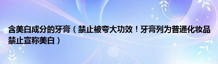 大家好,綜合小編來為大家講解下。含美白成分的牙膏,禁止被夸大功效!牙膏列為普通化妝品禁止宣稱美白很多人還不知道,現在讓我們一起來看看吧!