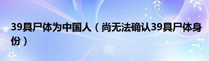 大家好,綜合小編來為大家講解下。39具尸體為中國人,尚無法確認39具尸體身份很多人還不知道,現在讓我們一起來看看吧!