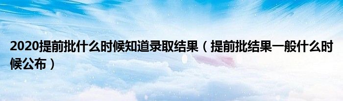 2020提前批什么時(shí)候知道錄取結(jié)果?提前批結(jié)果一般什么時(shí)候公布?提前批有哪些學(xué)校和專業(yè)?下面針對(duì)這一問題,小編整理了相關(guān)資料,一起來看看。