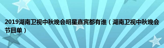 大家好,綜合小編來為大家講解下。2019湖南衛(wèi)視中秋晚會明星嘉賓都有誰,湖南衛(wèi)視中秋晚會節(jié)目單很多人還不知道,現(xiàn)在讓我們一起來看看吧!