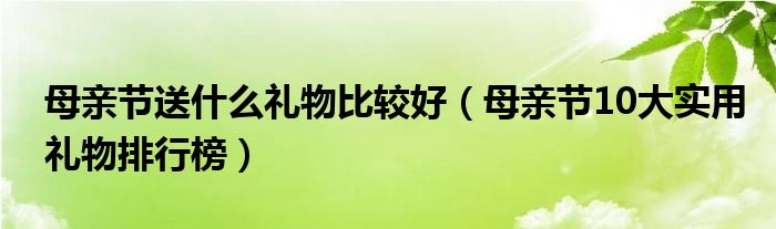 大家好,綜合小編來為大家講解下。母親節送什么禮物比較好,母親節10大實用禮物排行榜很多人還不知道,現在讓我們一起來看看吧!