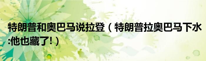 大家好,綜合小編來為大家講解下。特朗普和奧巴馬說拉登,特朗普拉奧巴馬下水:他也藏了!很多人還不知道,現在讓我們一起來看看吧!