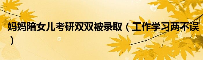 大家好,綜合小編來為大家講解下。媽媽陪女兒考研雙雙被錄取,工作學習兩不誤很多人還不知道,現在讓我們一起來看看吧!