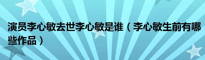 大家好,綜合小編來(lái)為大家講解下。演員李心敏去世李心敏是誰(shuí),李心敏生前有哪些作品很多人還不知道,現(xiàn)在讓我們一起來(lái)看看吧!