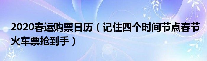 大家好,綜合小編來(lái)為大家講解下。2020春運(yùn)購(gòu)票日歷,記住四個(gè)時(shí)間節(jié)點(diǎn)春節(jié)火車(chē)票搶到手很多人還不知道,現(xiàn)在讓我們一起來(lái)看看吧!