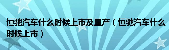 大家好,綜合小編來為大家講解下。恒馳汽車什么時候上市及量產,恒馳汽車什么時候上市很多人還不知道,現在讓我們一起來看看吧!
