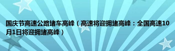 大家好,綜合小編來為大家講解下。國慶節高速公路堵車高峰,高速將迎擁堵高峰:全國高速10月1日將迎擁堵高峰很多人還不知道,現在讓我們一起來看看吧!
