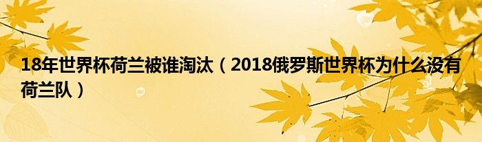 大家好,綜合小編來為大家講解下。18年世界杯荷蘭被誰淘汰,2018俄羅斯世界杯為什么沒有荷蘭隊很多人還不知道,現在讓我們一起來看看吧!