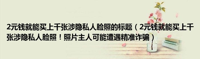 大家好,綜合小編來為大家講解下。2元錢就能買上千張涉隱私人臉照的標題,2元錢就能買上千張涉隱私人臉照!照片主人可能遭遇精準詐騙很多人還不知道,現在讓我們一起來看看吧!