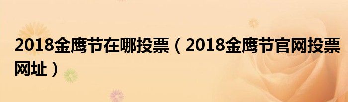 大家好,綜合小編來為大家講解下。2018金鷹節在哪投票,2018金鷹節官網投票網址很多人還不知道,現在讓我們一起來看看吧!