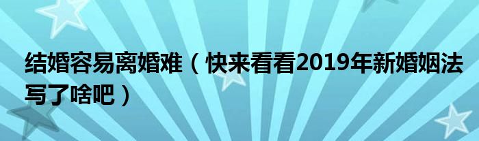 大家好,綜合小編來為大家講解下。結婚容易離婚難,快來看看2019年新婚姻法寫了啥吧很多人還不知道,現在讓我們一起來看看吧!