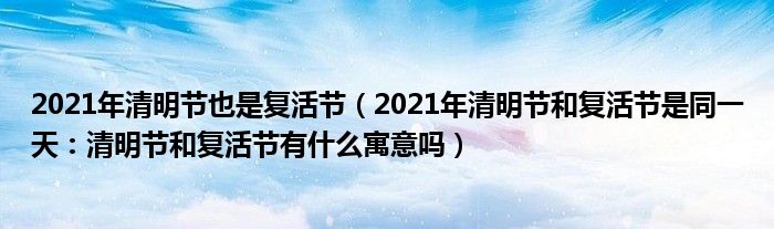大家好,綜合小編來為大家講解下。2021年清明節也是復活節,2021年清明節和復活節是同一天:清明節和復活節有什么寓意嗎很多人還不知道,現在讓我們一起來看看吧!