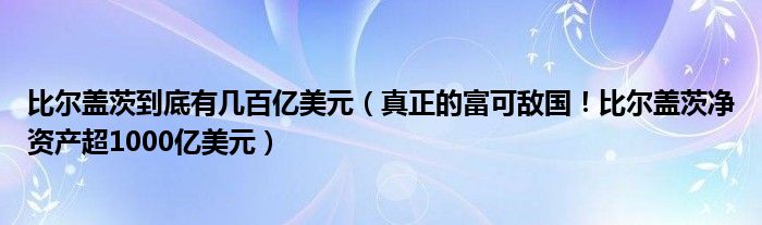 大家好,綜合小編來(lái)為大家講解下。比爾蓋茨到底有幾百億美元,真正的富可敵國(guó)!比爾蓋茨凈資產(chǎn)超1000億美元很多人還不知道,現(xiàn)在讓我們一起來(lái)看看吧!