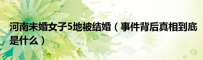 大家好,綜合小編來為大家講解下。河南未婚女子5地被結婚,事件背后真相到底是什么很多人還不知道,現在讓我們一起來看看吧!