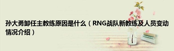 大家好,綜合小編來為大家講解下。孫大勇卸任主教練原因是什么,RNG戰隊新教練及人員變動情況介紹很多人還不知道,現在讓我們一起來看看吧!