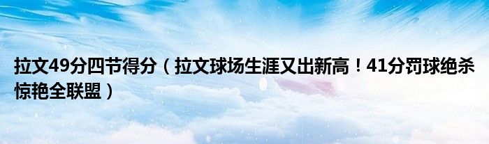 大家好,綜合小編來為大家講解下。拉文49分四節得分,拉文球場生涯又出新高!41分罰球絕殺驚艷全聯盟很多人還不知道,現在讓我們一起來看看吧!