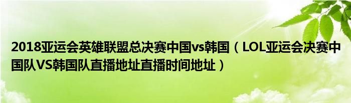 大家好,綜合小編來為大家講解下。2018亞運會英雄聯盟總決賽中國vs韓國,LOL亞運會決賽中國隊VS韓國隊直播地址直播時間地址很多人還不知道,現在讓我們一起來看看吧!