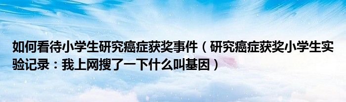 大家好,綜合小編來(lái)為大家講解下。如何看待小學(xué)生研究癌癥獲獎(jiǎng)事件,研究癌癥獲獎(jiǎng)小學(xué)生實(shí)驗(yàn)記錄:我上網(wǎng)搜了一下什么叫基因很多人還不知道,現(xiàn)在讓我們一起來(lái)看看吧!