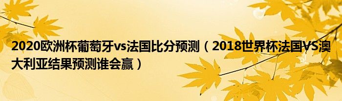 大家好,綜合小編來為大家講解下。2020歐洲杯葡萄牙vs法國比分預測,2018世界杯法國VS澳大利亞結果預測誰會贏很多人還不知道,現在讓我們一起來看看吧!