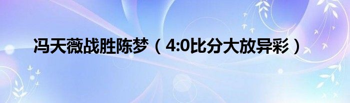 大家好,綜合小編來為大家講解下。馮天薇戰勝陳夢,4:0比分大放異彩很多人還不知道,現在讓我們一起來看看吧!