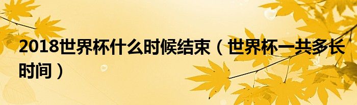 大家好,綜合小編來為大家講解下。2018世界杯什么時候結束,世界杯一共多長時間很多人還不知道,現(xiàn)在讓我們一起來看看吧!