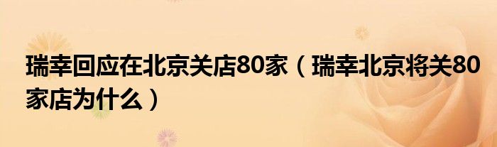大家好,綜合小編來為大家講解下。瑞幸回應在北京關店80家,瑞幸北京將關80家店為什么很多人還不知道,現在讓我們一起來看看吧!