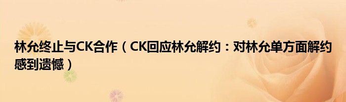 大家好,綜合小編來為大家講解下。林允終止與CK合作,CK回應(yīng)林允解約:對林允單方面解約感到遺憾很多人還不知道,現(xiàn)在讓我們一起來看看吧!