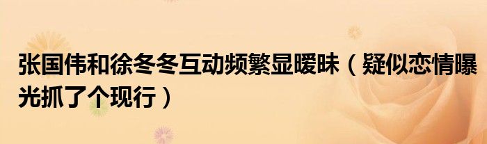 大家好,綜合小編來為大家講解下。張國偉和徐冬冬互動頻繁顯曖昧,疑似戀情曝光抓了個現行很多人還不知道,現在讓我們一起來看看吧!