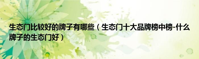大家好,綜合小編來為大家講解下。生態(tài)門比較好的牌子有哪些,生態(tài)門十大品牌榜中榜-什么牌子的生態(tài)門好很多人還不知道,現(xiàn)在讓我們一起來看看吧!