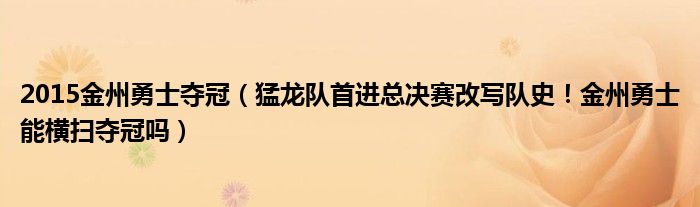 大家好,綜合小編來為大家講解下。2015金州勇士奪冠,猛龍隊首進總決賽改寫隊史!金州勇士能橫掃奪冠嗎很多人還不知道,現在讓我們一起來看看吧!