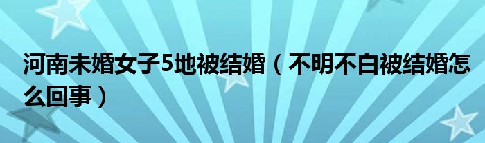 大家好,綜合小編來為大家講解下。河南未婚女子5地被結婚,不明不白被結婚怎么回事很多人還不知道,現在讓我們一起來看看吧!