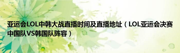 大家好,綜合小編來為大家講解下。亞運會LOL中韓大戰直播時間及直播地址,LOL亞運會決賽中國隊VS韓國隊陣容很多人還不知道,現在讓我們一起來看看吧!