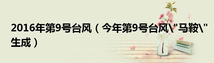 大家好,綜合小編來為大家講解下。2016年第9號臺風,今年第9號臺風"馬鞍"生成很多人還不知道,現在讓我們一起來看看吧!