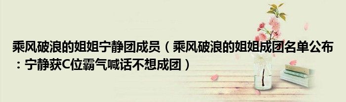 大家好,綜合小編來為大家講解下。乘風破浪的姐姐寧靜團成員,乘風破浪的姐姐成團名單公布:寧靜獲C位霸氣喊話不想成團很多人還不知道,現在讓我們一起來看看吧!