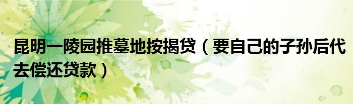 大家好,綜合小編來為大家講解下。昆明一陵園推墓地按揭貸,要自己的子孫后代去償還貸款很多人還不知道,現在讓我們一起來看看吧!
